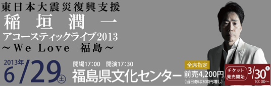 - 2013/03/29 稲垣潤一【東日本大震災復興支援 福島Live】のお知らせ